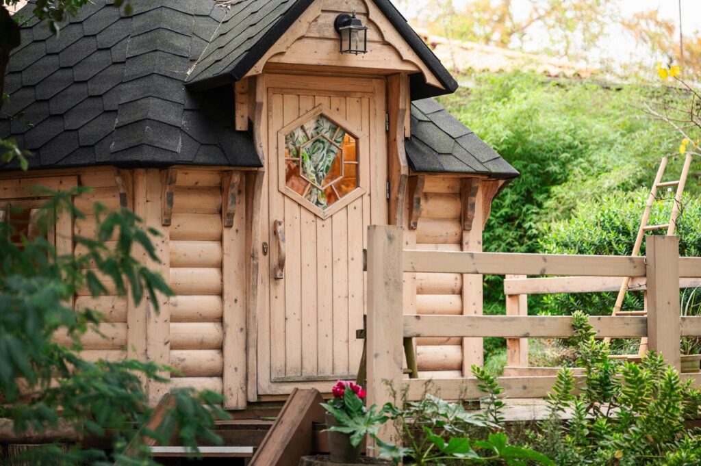le kota c’est au départ un abri de chasse, un petit chalet de forme hexagonale en bois brut et demi rondins de bois, il est originaire de Finlande. Que fait-il ici à Tharon plage? Il accompagne harmonieusement notre maison finlandaise et surtout pour notre grand plaisir, il nous permet de partager avec vous cette passion que nous avons des habitats en bois.